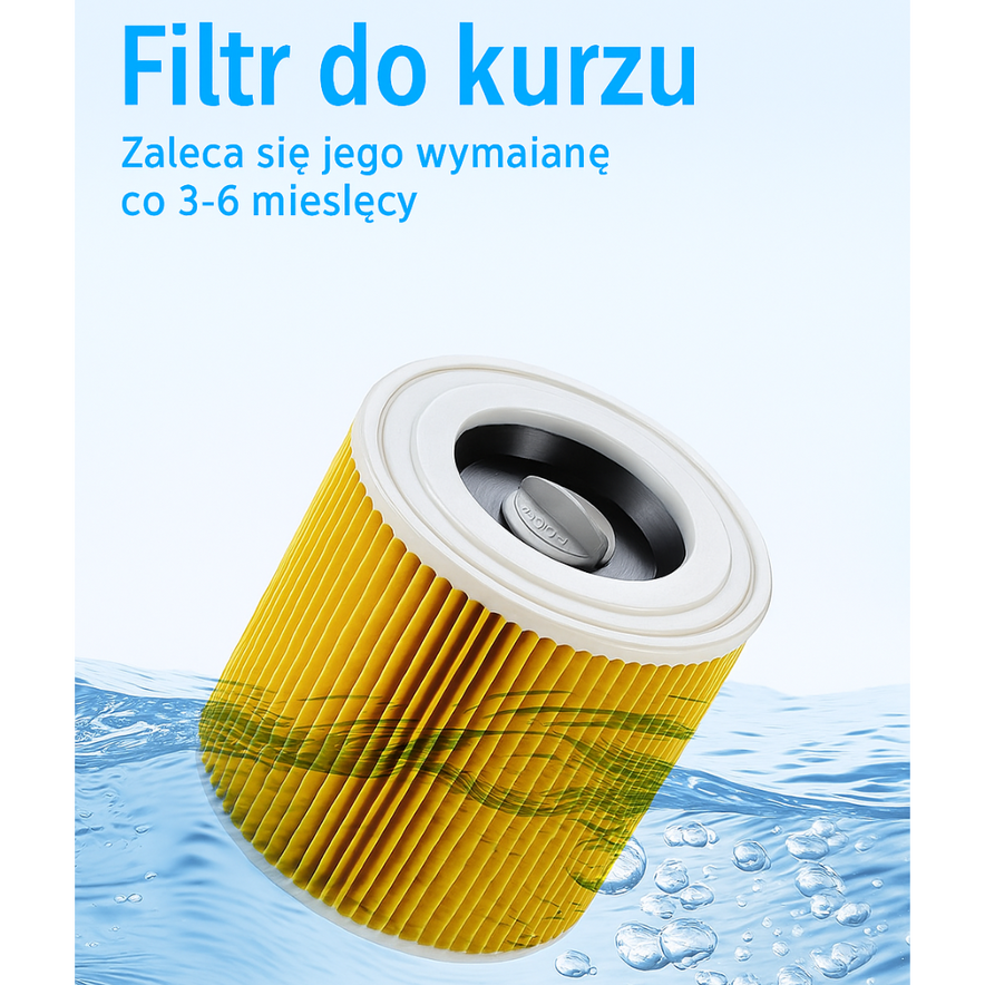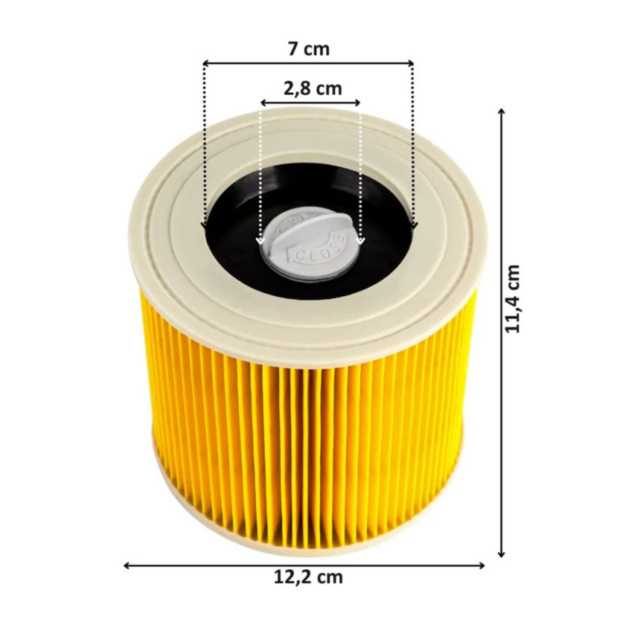 Wysokiej jakości filtr powietrza do odkurzaczy wielofunkcyjnych Karcher. Filtr wykonany z wytrzymałego, plisowanego materiału filtrującego skutecznie zatrzymuje kurz, pył i inne zanieczyszczenia, chroniąc silnik i poprawiając jakość powietrza.