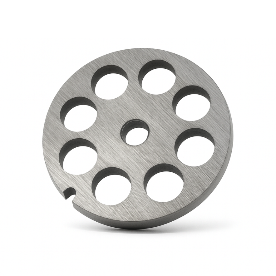 Solidne sitko stalowe nr 8 o średnicy oczek 13 mm, przeznaczone do większych maszynek do mięsa Zelmer, Bosch oraz innych urządzeń z komorą mielenia nr 8.