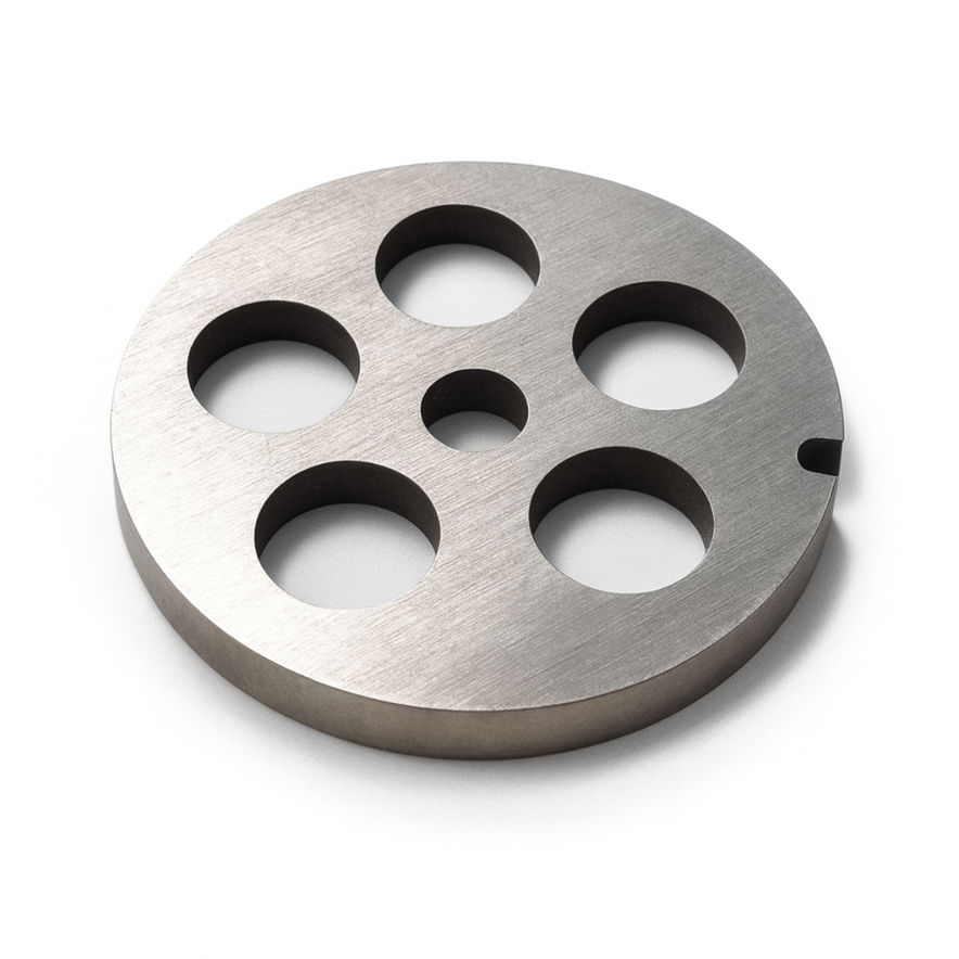 Wytrzymałe sitko stalowe nr 8 o średnicy oczek 16 mm, przeznaczone do większych maszynek do mięsa Zelmer, Bosch oraz innych modeli z komorą mielenia nr 8.