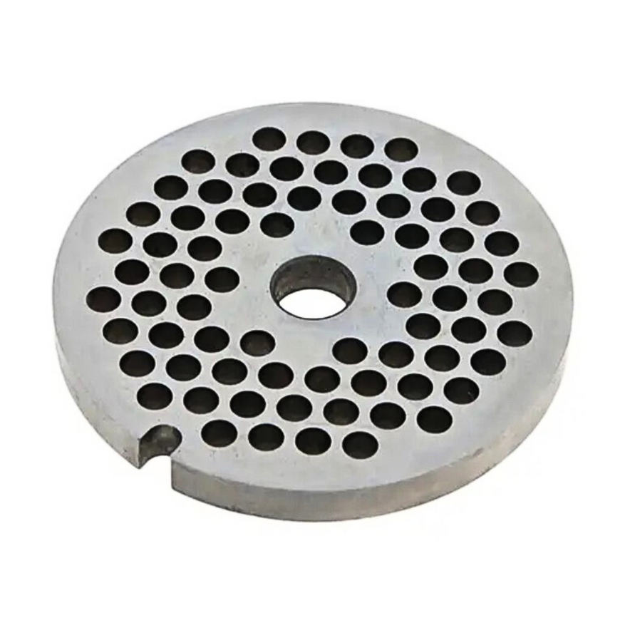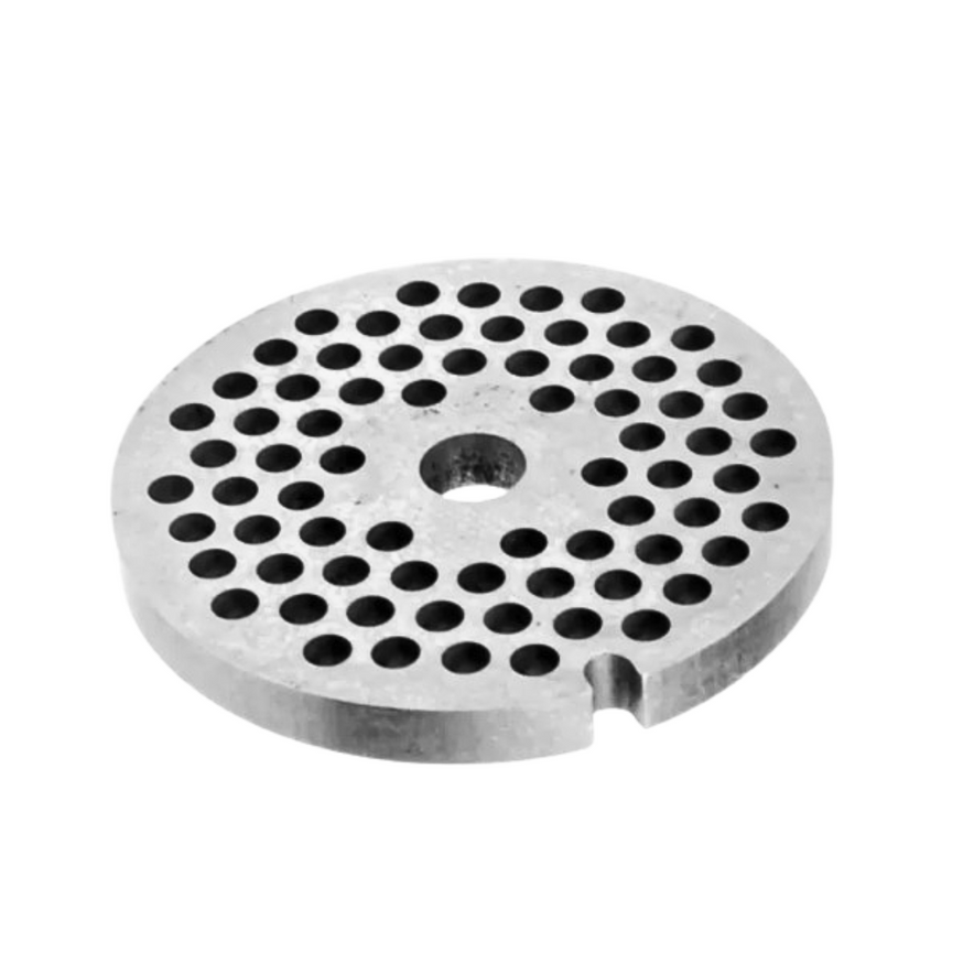 Wytrzymałe sitko nierdzewne nr 8 o średnicy oczek 4 mm, przeznaczone do większych maszynek do mięsa Zelmer, Bosch i innych urządzeń z komorą nr 8.