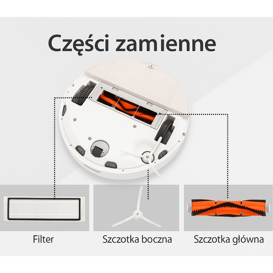 Aby zapewnić maksymalną wydajność robota, zaleca się wymianę zestawu materiałów eksploatacyjnych co 2–3 miesiące (w zależności od częstotliwości użytkowania).