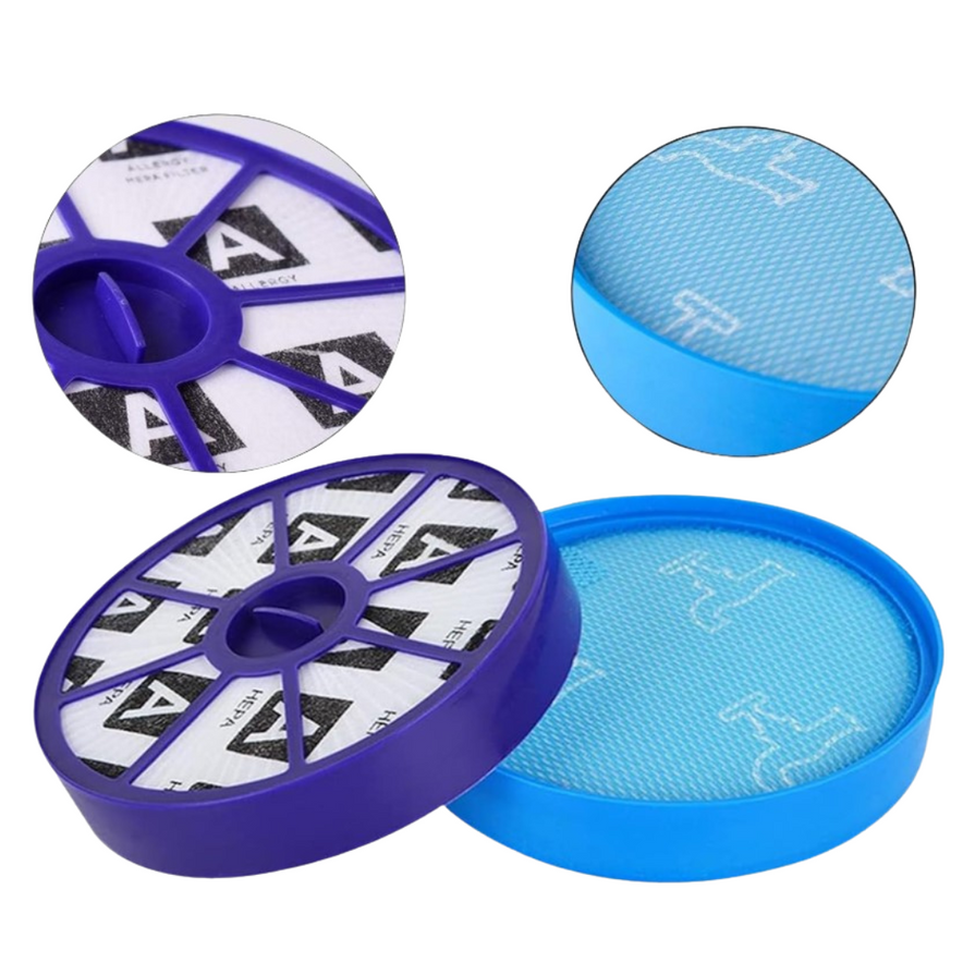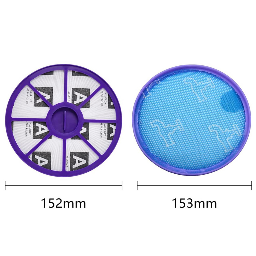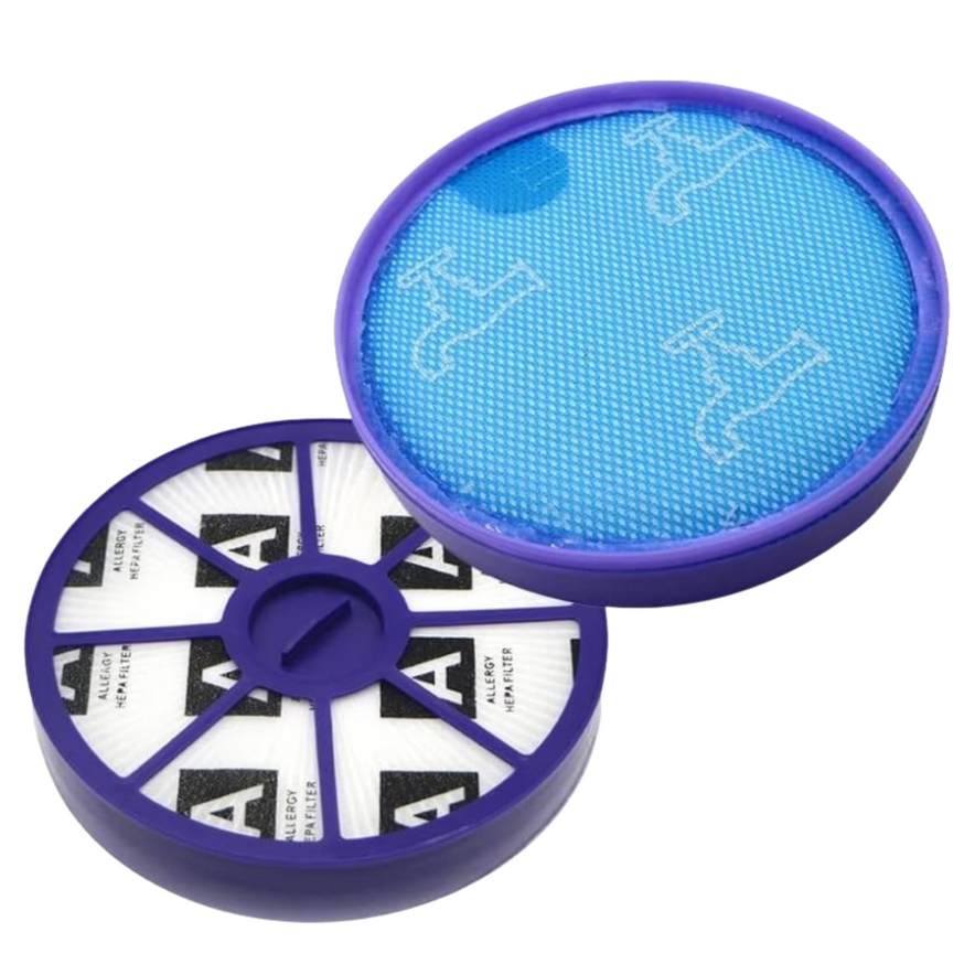 Kompletny zestaw filtrów do odkurzaczy bębnowych Dyson serii DC19, DC20, DC21, DC29. W skład wchodzi zmywalny filtr przed silnikiem oraz filtr wylotowy HEPA (po silniku). Zestaw skutecznie zatrzymuje drobny kurz i alergeny, chroni silnik oraz pomaga utrzymać stałą siłę ssania. Idealny jako ekonomiczna i niezawodna alternatywa dla oryginału.