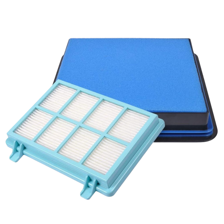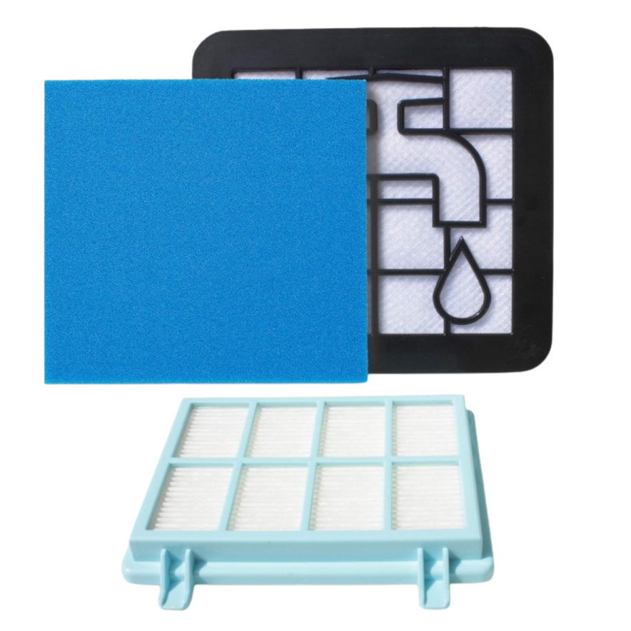 Kompletny zestaw filtrów do odkurzaczy bezworkowych Philips PowerPro Compact. To kompatybilny zamiennik oryginalnego kompletu FC8010/02. Zawiera zmywalny filtr wlotowy (piankowy) oraz filtr wylotowy EPA/HEPA. Zestaw poprawia jakość wydmuchiwanego powietrza, chroni silnik i pomaga utrzymać stałą siłę ssania.